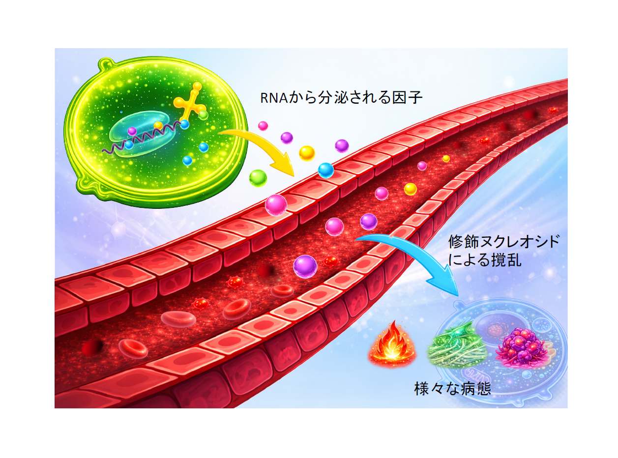 生体内あるいは環境中には様々な撹乱因子が存在し、それらはときに生体の恒常性を揺るがし、生命現象に思いがけない影響を及ぼします。しかし、その実体や作用機構の多くは未だ十分に理解されていません。様々なRNAは細胞内で遺伝情報の発現を担う分子であり、転写後には多様な化学修飾を受けることが知られています。RNAが分解される過程で生じる修飾ヌクレオシドは細胞外液中に豊富に存在しますが、それらが生体内でどのような役割を持つのかはほとんど明らかになっていません。