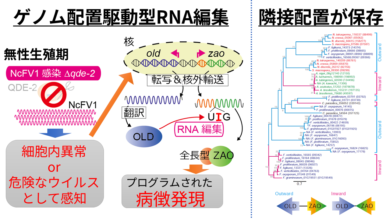 私たちは、モデル糸状菌アカパンカビにおいて、新たな制御モデル『ゲノム配置駆動型RNA編集』による「攪乱RNA(perRNA)」を発見しました。